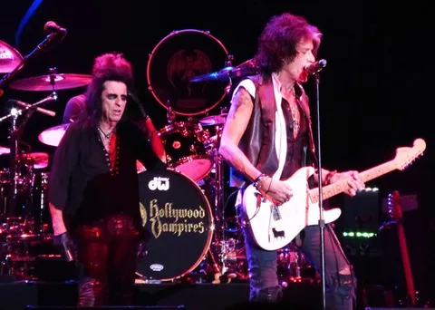 Yes, Johnny Depp is the one the crowd (female part at least) goes wild for, and probably the one who has the most to prove – considering his ‘day job’ is acting. There had been some concerns for his health the week prior, when he was spotted out in Europe looking what some described as gaunt and ill. And although looking perhaps slightly slimmer, he seems in good form, and plays the part of ‘rock star’ to the extreme tonight.
