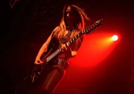 with foot on monitor just like the man himself, and Linda McDonald, complete with Nicko McBrain-approved Sooty puppet, keeps things tight, perfectly nailing the classic fills everyone knows and loves that were made famous by the aforementioned Sooty fan, and the dear departed Clive Burr.
